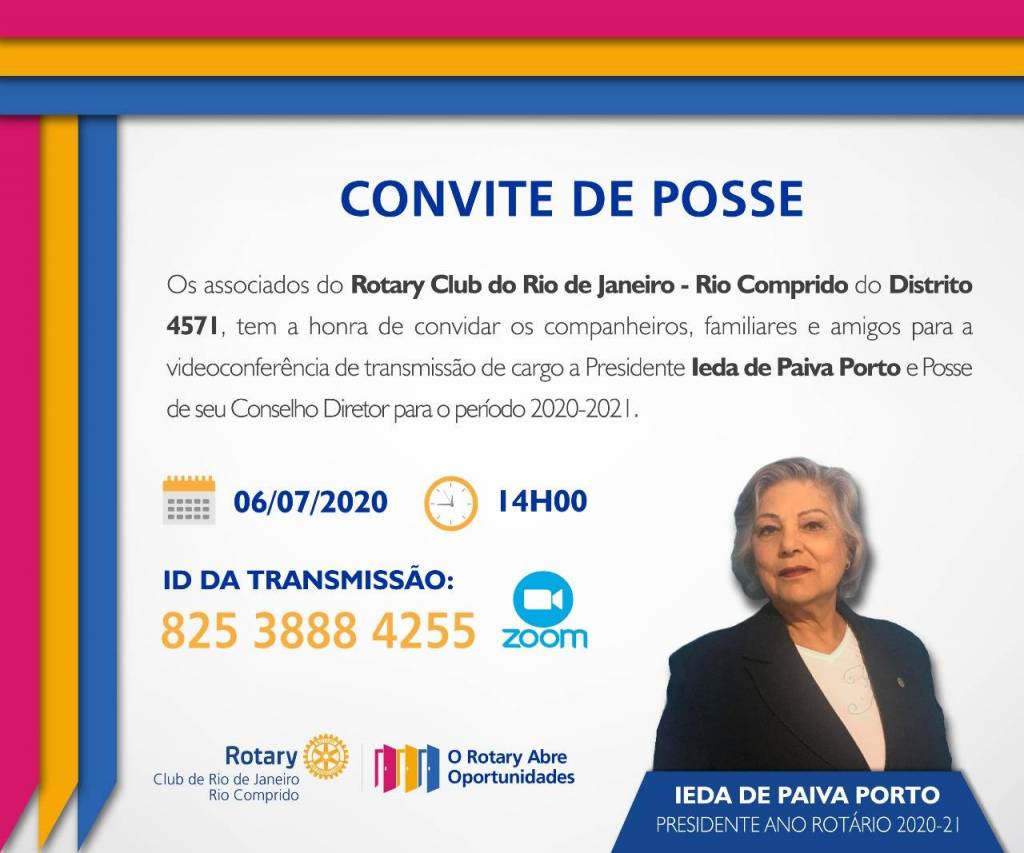 Festiva virtual de transmição de Cargo de Presidente 2019-20 Luiz Fernando Pinto para a Presidente 2020-21 Ieda de Paiva Porto e Posse de seu Conselho Diretor