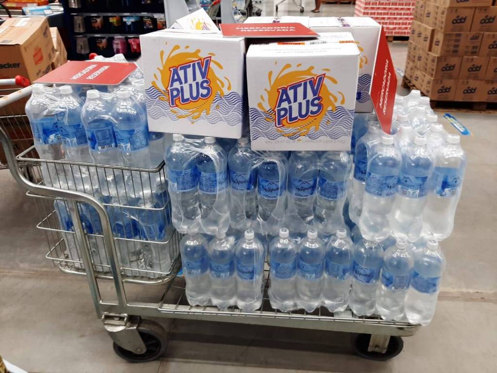Há água em garrafa em grande número mas é impossível prever se será suficiente.