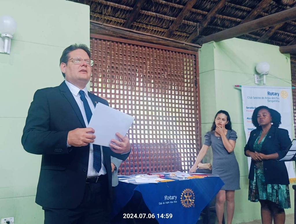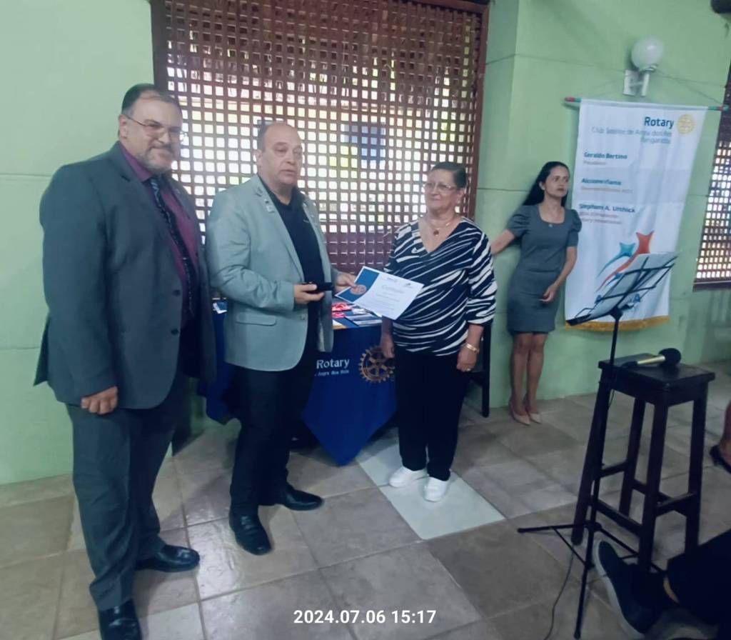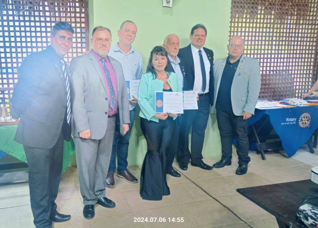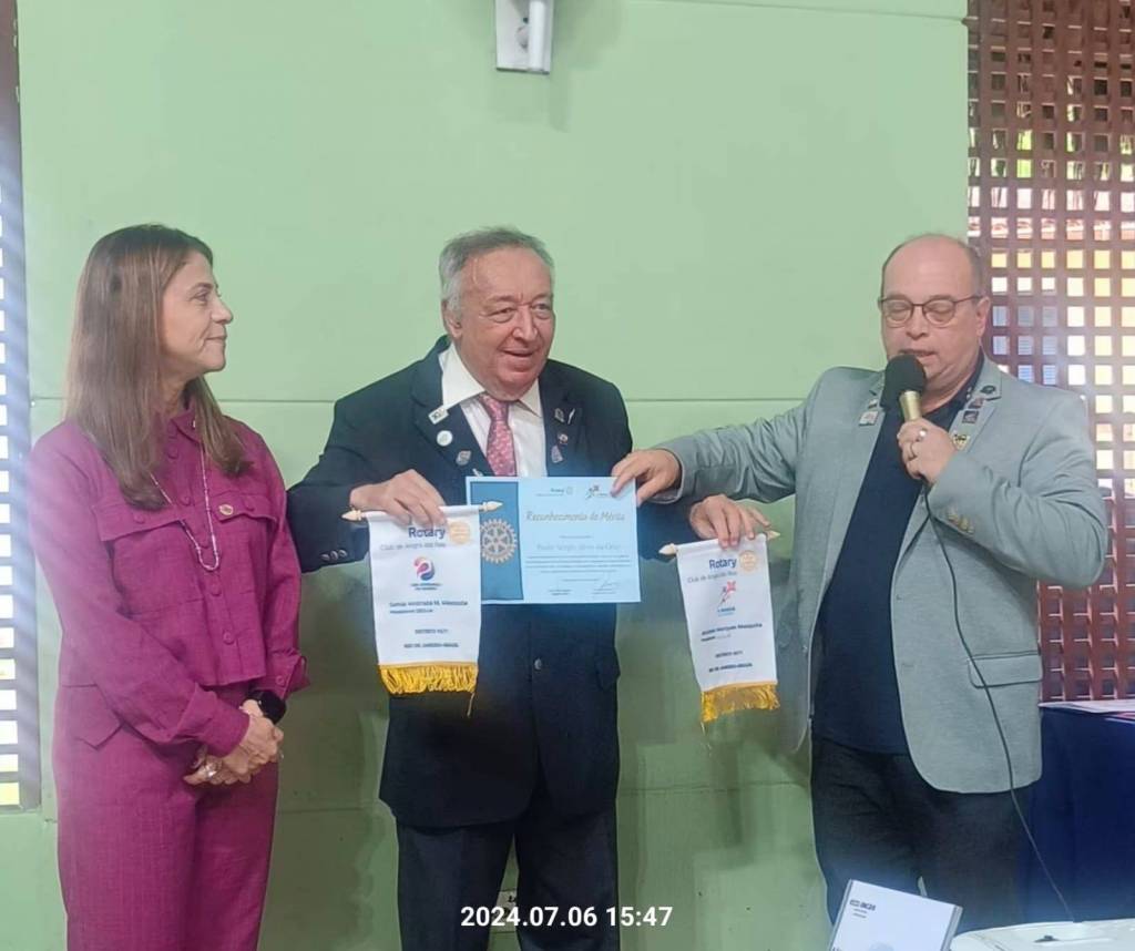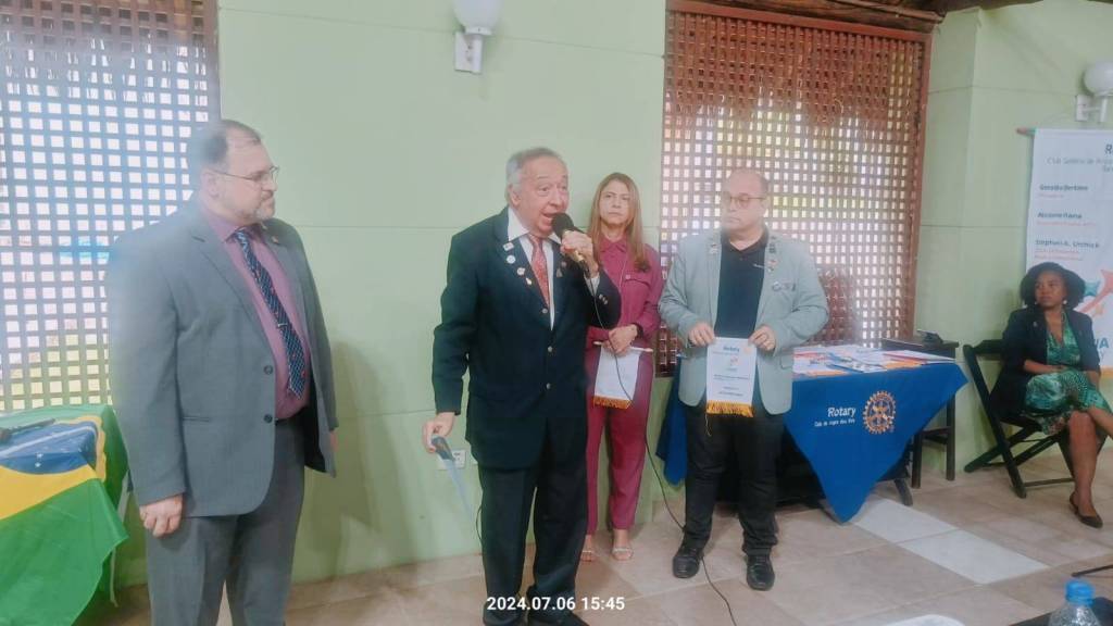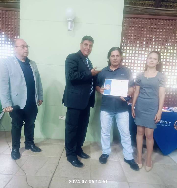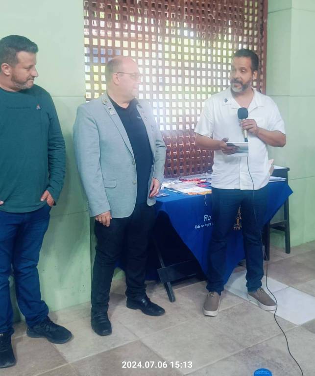 No dia seis de julho de dois mil e vinte e quatro, no club Marinas de Angra dos Reis, tomou posse a nova diretoria do Rotary Club de Angra dos Reis para o ano rotário 2024-2025, sob o lema A MAGIA DO ROTARY. O Co. Antônio Marques Mesquita tomou posse como presidente, a Coa. Roberta Ferreira como vice-presidene, a Coa. Selma como secretária e o Co. Irineu Pinto Guimarães como tesoureiro. A cerimônia foi cheia de momentos marcantes e emocionantes. Como quando fizeram a homenagem ao saudoso Mário Lúcio da Mata, presidente do Rotary Club Satélite de Mangaratiba. Sua esposa estava lá para receber em nome dele todas as palavras de carinho e apreço que lhe forma dirigidas. O filho do presidente, Filippe Andrade Mesquita, esteve presente auxiliando em todos os preparativos e tambem durante a cerimõnia e foi agradecido pelo pai Mesquita. O Co. Irineu recebeu o pin de membro 100% presente e o Co. Dr. Christiano Alvernaz recebeu o certificado de sócio honorário.