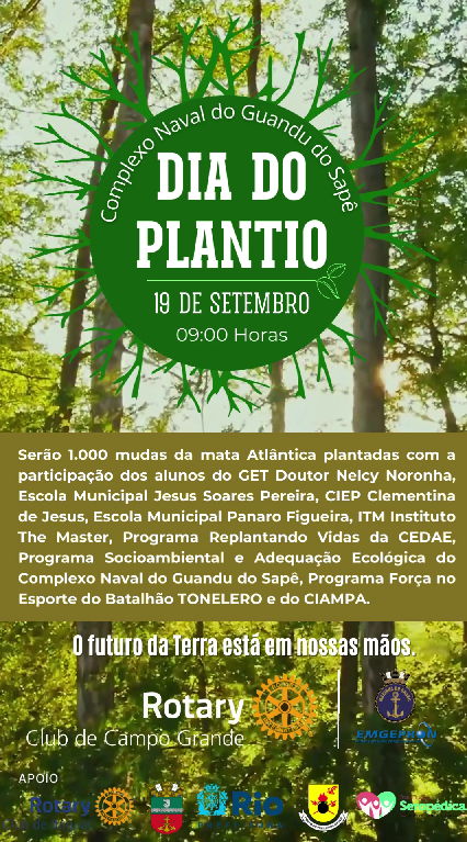 ROTARY CLUB DE CAMPO GRANDE E COMPLEXO NAVAL DO GUANDU DO SAPÊ REALIZARÃO O DIA DA ÁRVORE COM PLANTIO DE 1.000 MUDAS DA MATA ATLÂNTICA