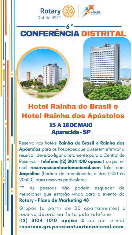 Ao fazer a reserva, não se esqueça de mencionar que estará participando do evento do Rotary - Plano de Marketing 48.
