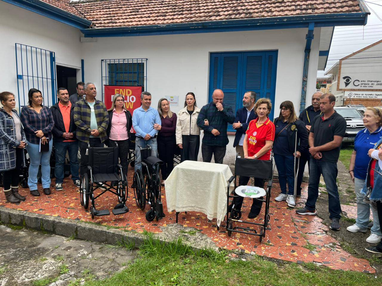 O Rotary Club de Campos do Jordão no dia 29 de janeiro fez a doação de 26 itens ( entre cadeiras de rodas, cadeiras de banho ) para o Fundo Social de Solidariedade do município. Participaram da entrega a presidente do Clube e associados, o Prefeito municipal, o secretário do Desenvolvimento Social e Presidente do Fundo Social de Solidariedade.
