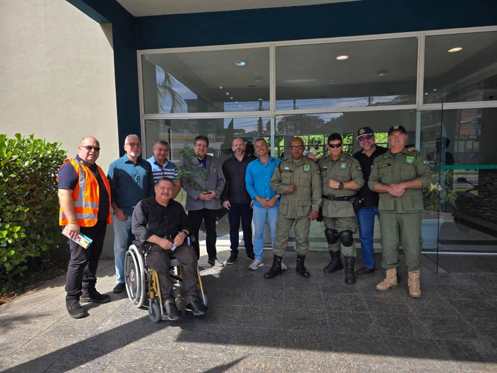 Foram visitados a sede da Brigada Municipal Meio Ambiente, o Marco Rotary no Centro e plantado uma muda de árvore pelo Governador Claudinei no parque da Praia da Chácara.