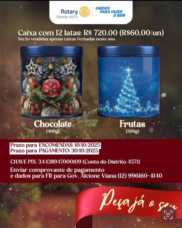 🎅 Apoia o Fundo Anual da Fundação Rotária, em seu nome;