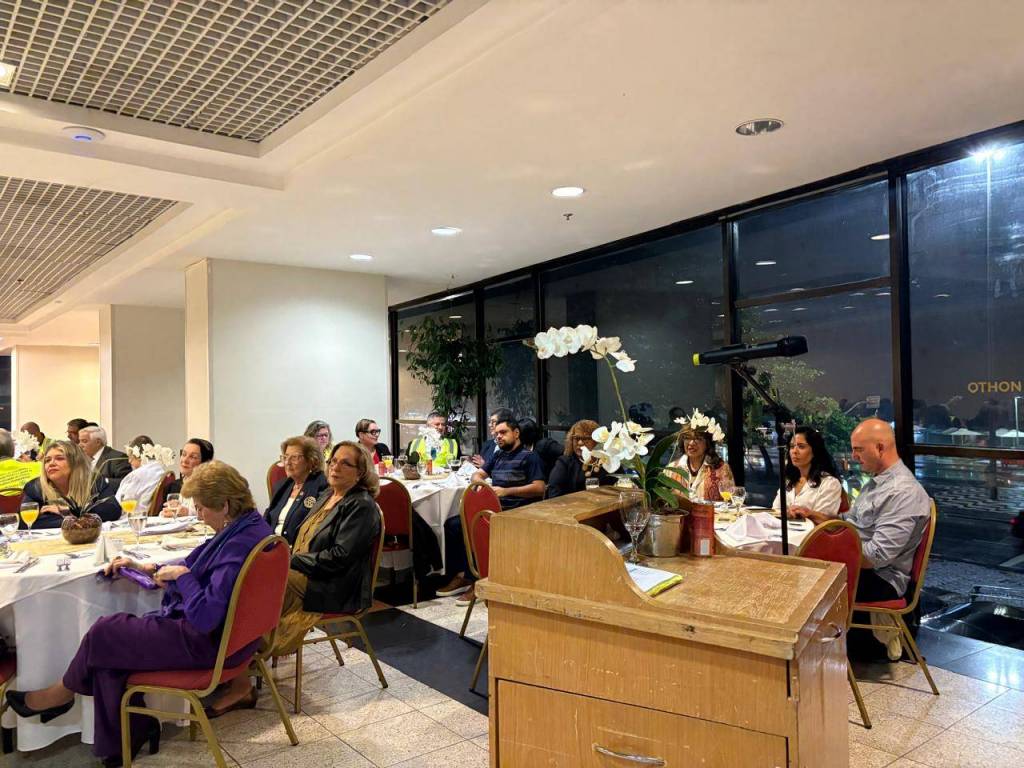 Encerrando o dia, uma festiva de companheirismo reuniu numerosos companheiros, companheiras e lideranças expressivas do clube, em um clima de alegria, amizade e união — reflexo vivo do ideal de servir.