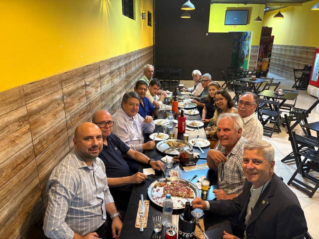 Encerramos a noite com um momento de companheirismo na pizzaria localizada na praça central da cidade — ocasião marcada por diálogo, acolhimento e fortalecimento dos laços que sustentam o ideal de servir.