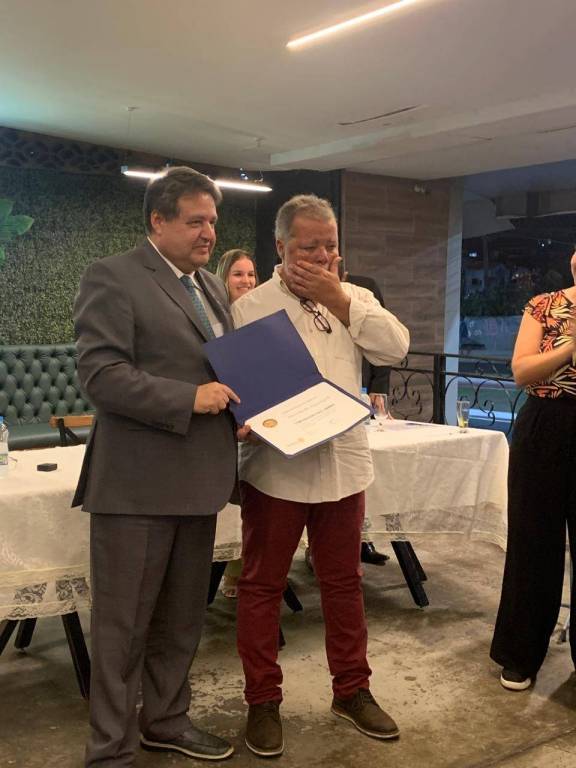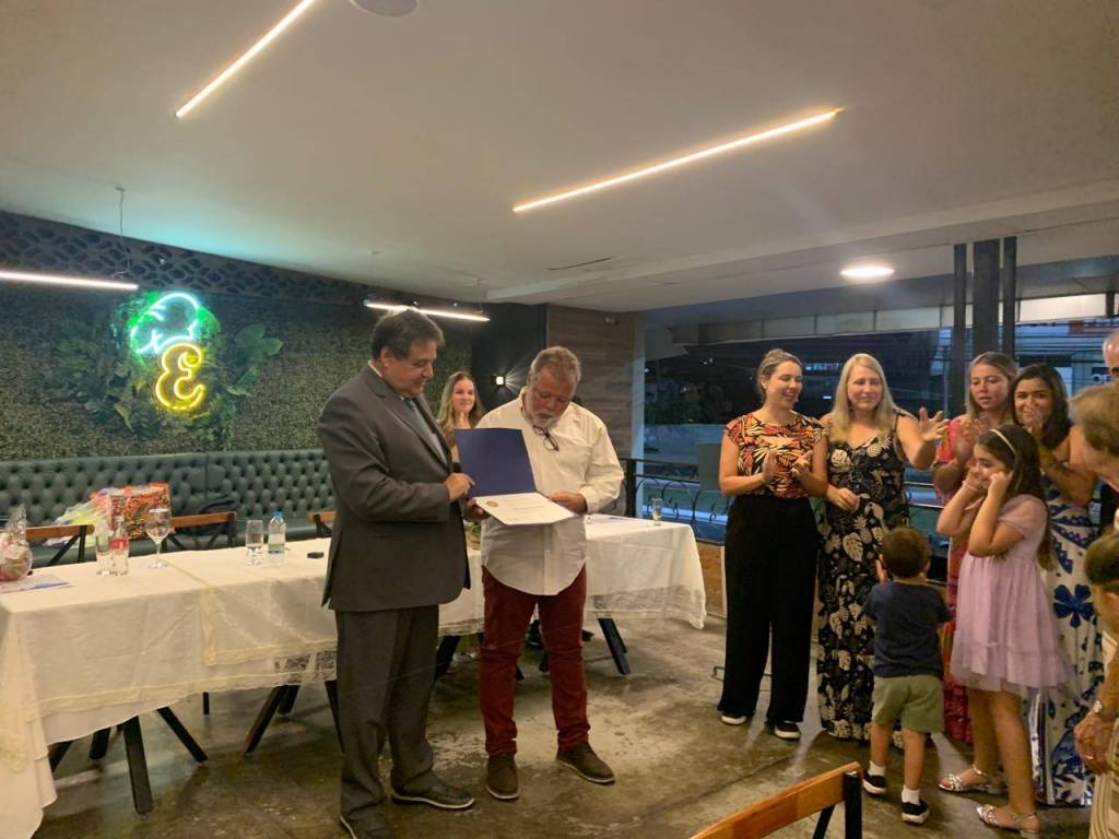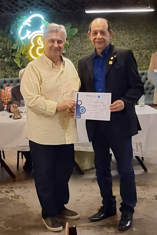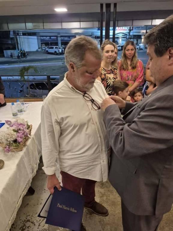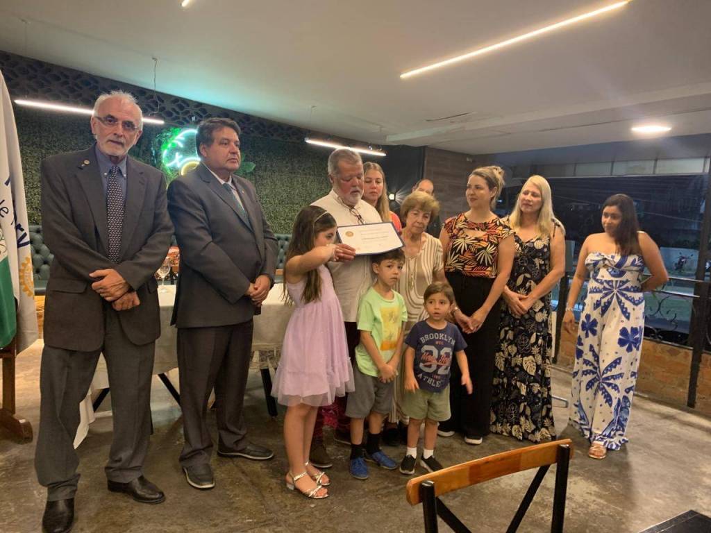 À noite, a festiva fechou o dia com chave de ouro: posse de novos jovens no Interact e homenagem emocionante ao companheiro Marcos Soares por mais de 30 anos de dedicação. 👏💙