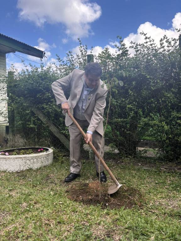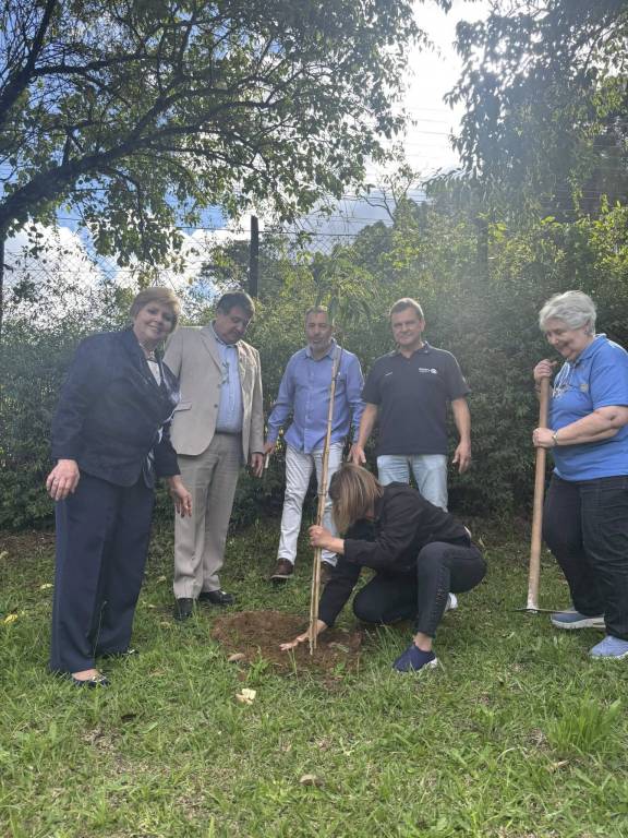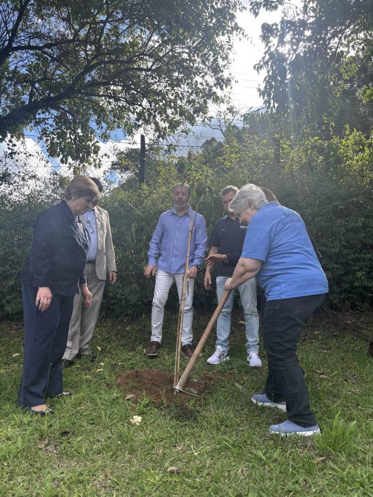 A visita continuou na Casa de Passagem, que acolhe pessoas em situação de rua. Lá, o Governador e demais companheiros dialogaram com a Secretaria de Desenvolvimento Econômico e Assistência Social sobre novas frentes de apoio do Rotary a esse importante projeto municipal. E, em um gesto simbólico e cheio de esperança, foram plantadas quatro mudas de árvores no quintal da casa — o primeiro passo para revitalizar o espaço e implantar, em breve, uma horta comunitária. 🌱💛