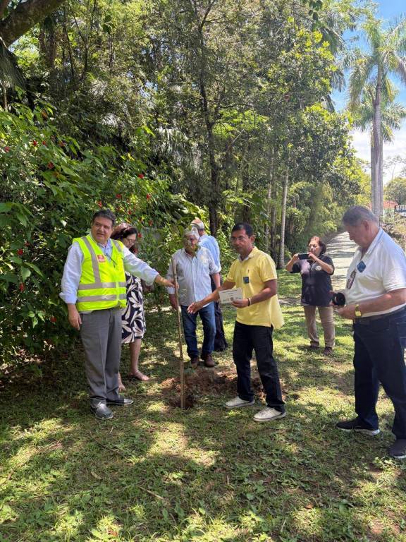 Durante a visita, o grupo realizou o plantio de uma árvore, simbolizando o compromisso de Rotary com a sustentabilidade e com a preservação ambiental — um gesto simples, mas profundamente alinhado às causas do distrito.