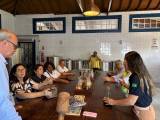 Ele chegou à cidade por volta das 10h30, quando foi recebido pelos rotarianos para uma visita especial à Fazenda da Família Rocha, proprietária da tradicional marca Cachaça Roxinha. O anfitrião Tony e sua esposa Alessandra apresentaram toda a estrutura da produção — uma operação organizada e exemplar, cuja cachaça tem 90% da produção exportada para os Estados Unidos.