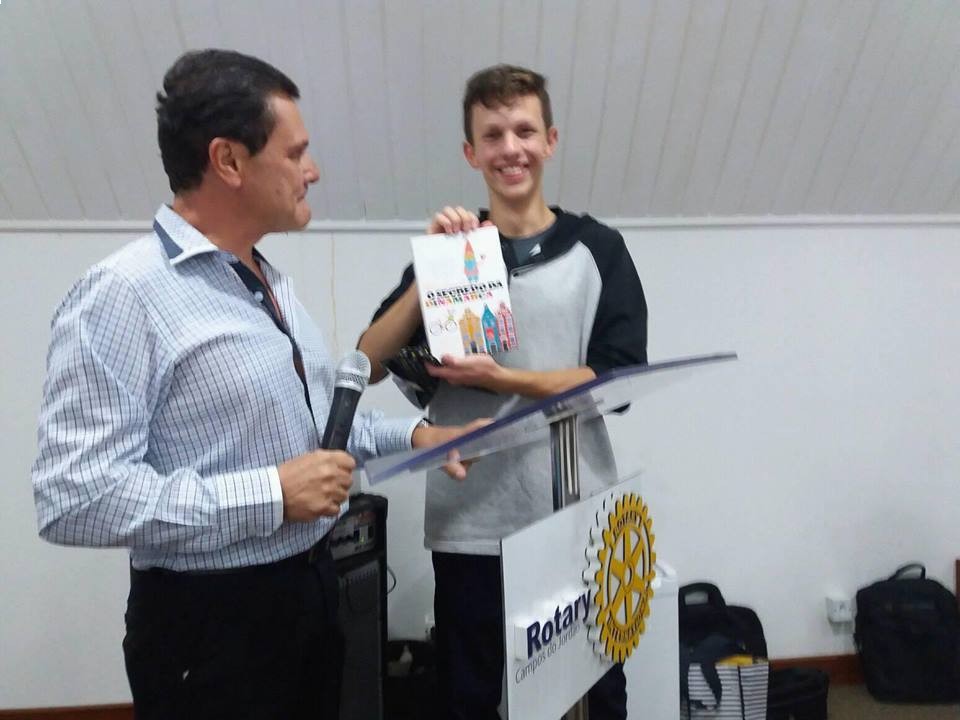 Na reunião de 07 de fevereiro o vice presidente do Clube Marcus Vinicius Maia Rezende presenteou o Jovem intercambista com um exemplar do livro Segredos da Dinamarca