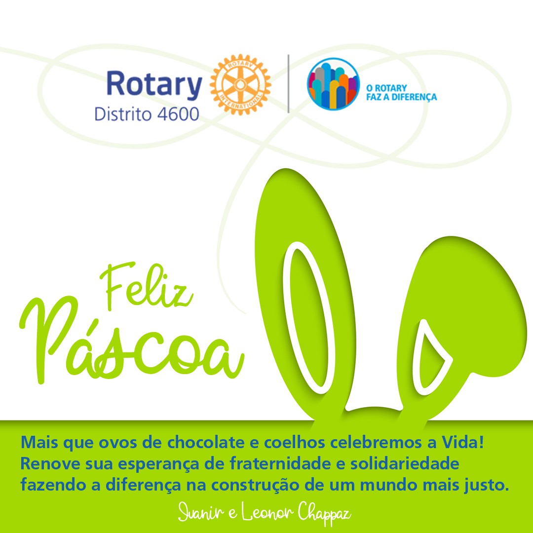 Desejo uma Feliz Páscoa para toda a família rotária, incluindo os familiares de cada um de vocês.