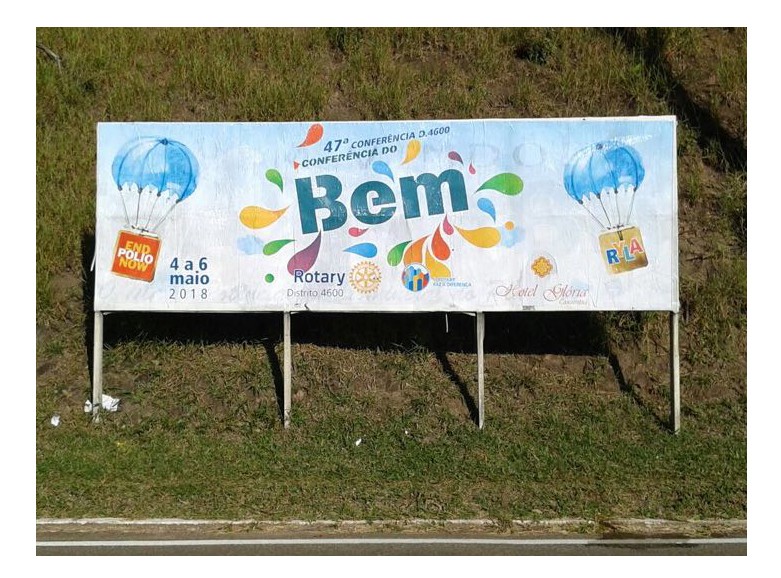 A Conferência do Bem já brilha sob o sol da encantadora Caxambu/MG. O outdoor na entrada da cidade abre os braços aos rotarianos, rotaractianos, interactianos, rotary kids e associados da Casa da Amizade para mais uma edição da conferência distrital do D.4600.