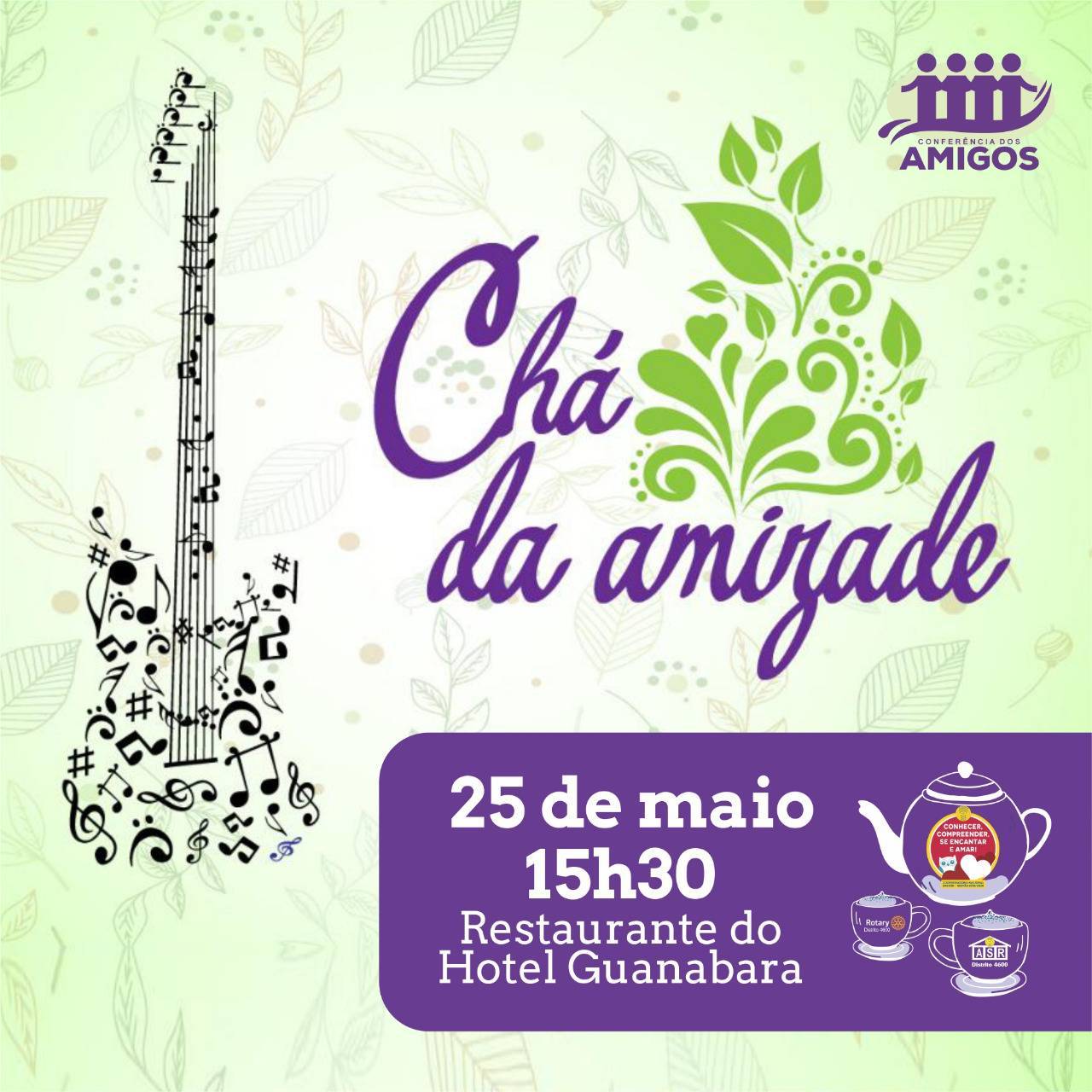 As senhoras de Rotarianos que estiverem presentes em São Lourenço poderão participar de um maravilhoso Chá da Tarde. A Coordenadora Distrital das Casas da Amizade, Liz Rubin e sua equipe estão preparando o evento com muito carinho para que todas possam desfrutar a vontade, botar a conversa em dia e discutir sobre assuntos importantes para a continuidade dos seus tabalhos.