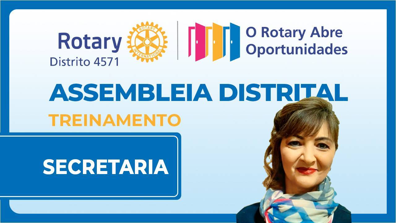 Treinamento para Secretários de Rotary Club, realizado no sábado, dia em 23 de maio de 2020, por ocasião da Assembléia Distrital pela companheira palestrante Elisete Rezende (RC de Campos do Jordão).