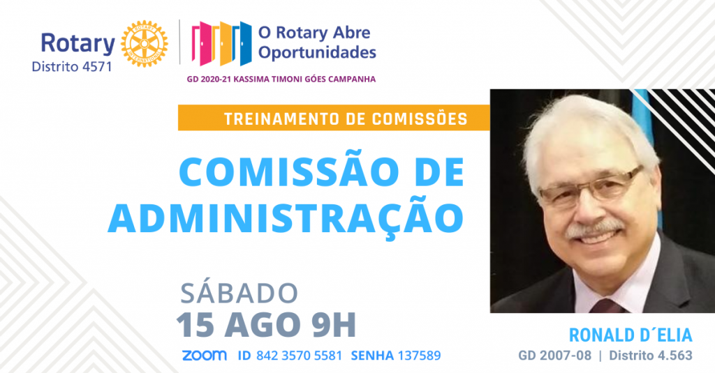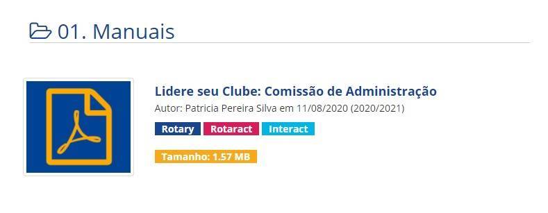 Parabéns pela sua nomeação para servir como presidente de comissão. O manual LIDERE SEU CLUBE Comissão de Administração o ajudará a estabelecer metas e a compreender seu papel no bom funcionamento do clube. Ele inclui normas e procedimentos para todos os clubes, bem como ideias que poderão ser úteis a você. O manual está disponível em https://www.rotary4571.org.br/downloads pasta 01. Manuais